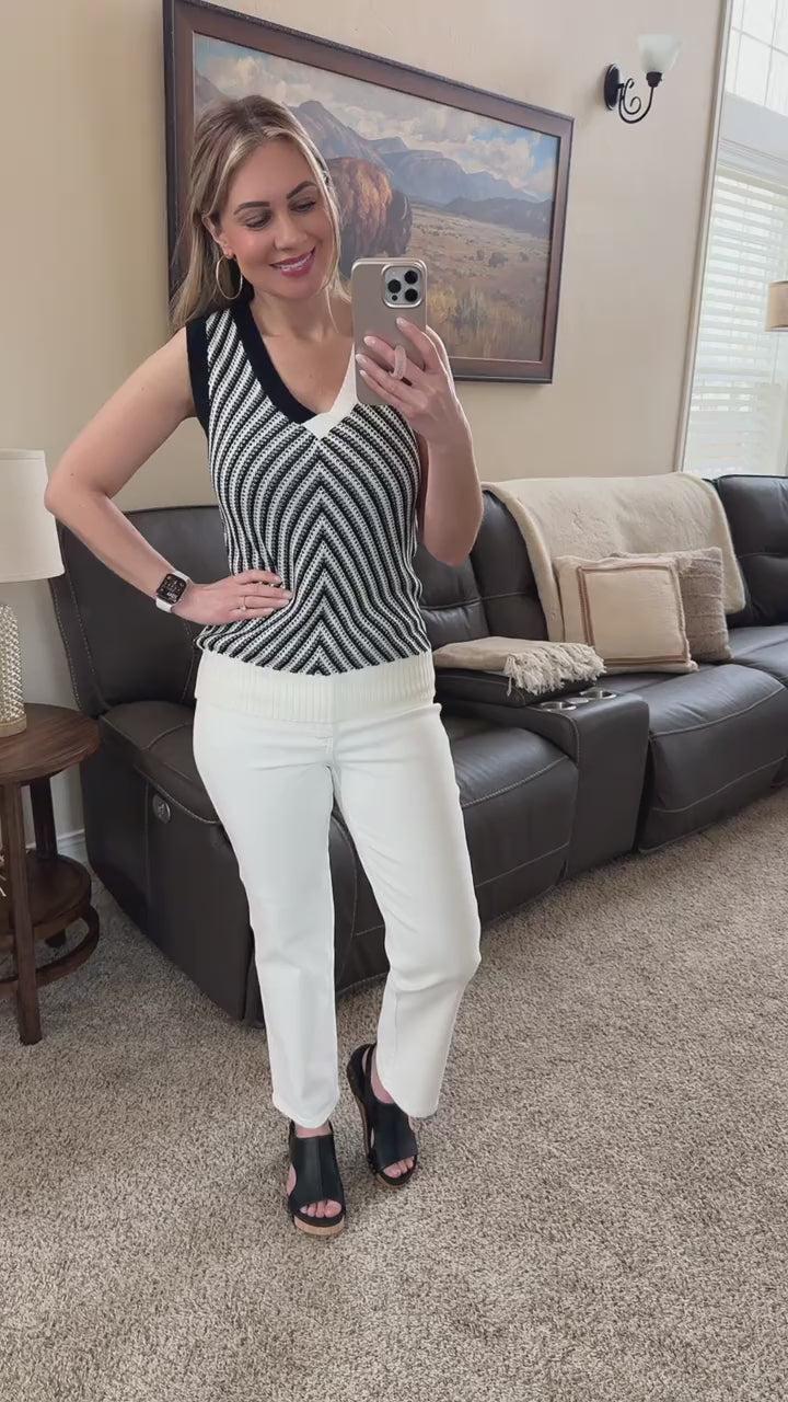 Black and White Sweater Knit Sleeveless Top