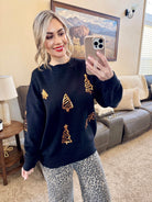Gold Tree Sequin Sweater in Black