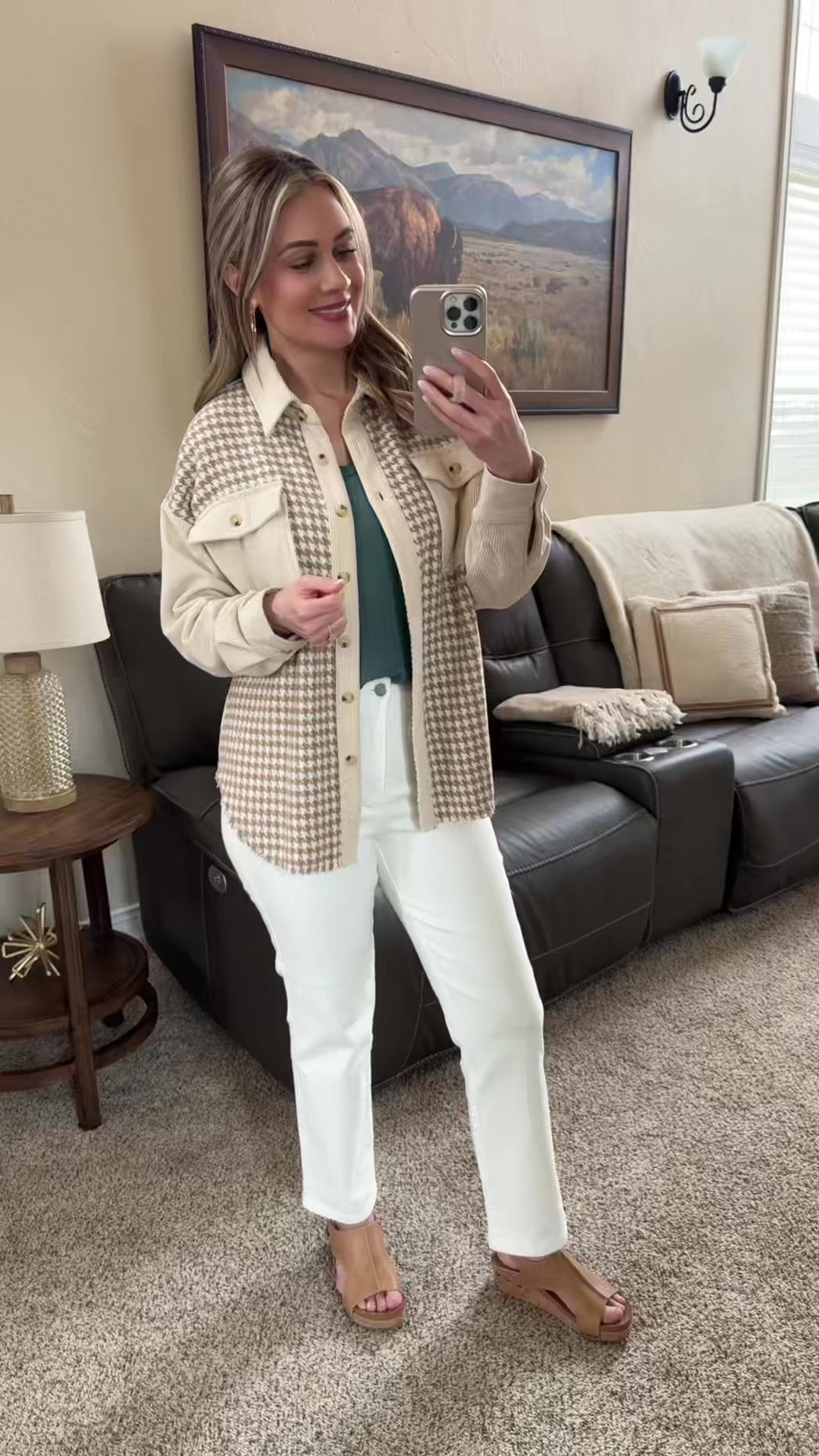 Houndstooth Cream Corduroy Shacket