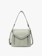 The M2167 Lorelei Double Zip Whipstitch Trim Crossbody offers both style and functionality for your everyday needs. The braided edge flap over with snap closure adds a touch of elegance and ensures the security of your belongings.