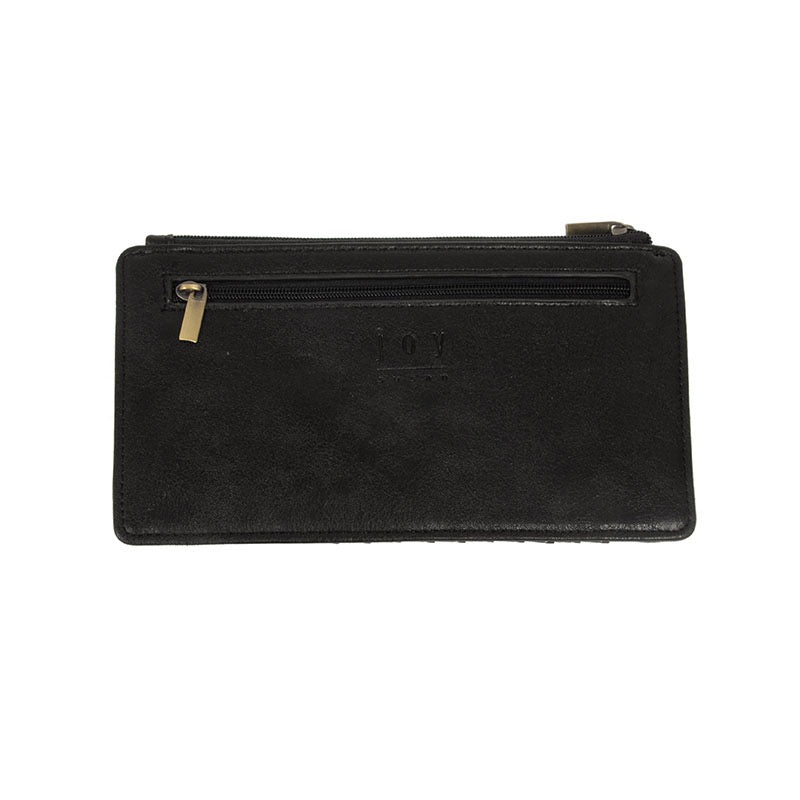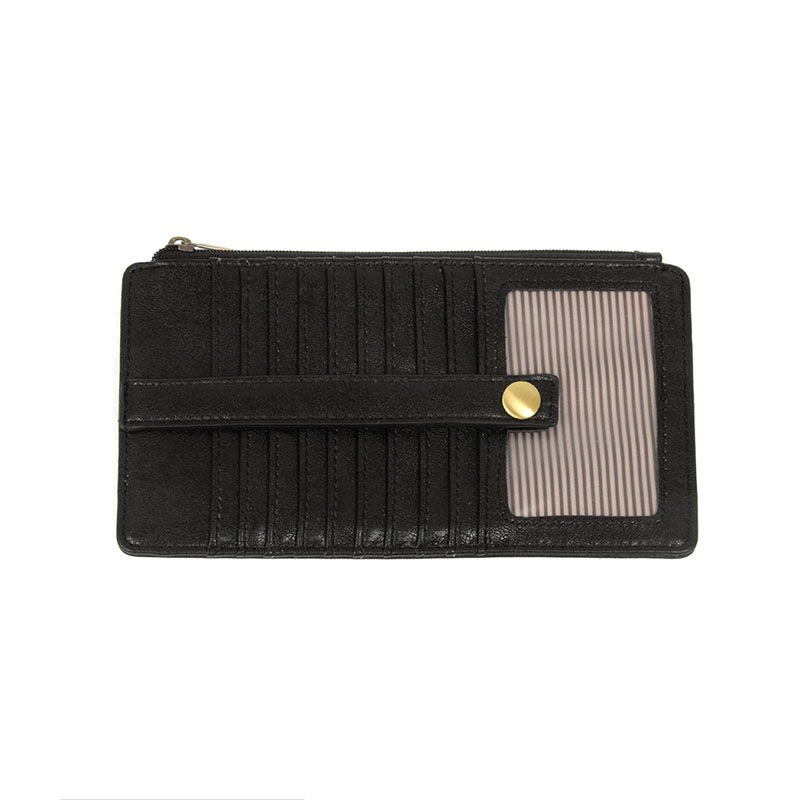 This slim and sleek card wallet has 9 credit card pockets, an ID window, zippered change pocket and zippered billfold pocket all in casual distressed Vegan Leather available in a kaleidoscope of beautiful colors.
