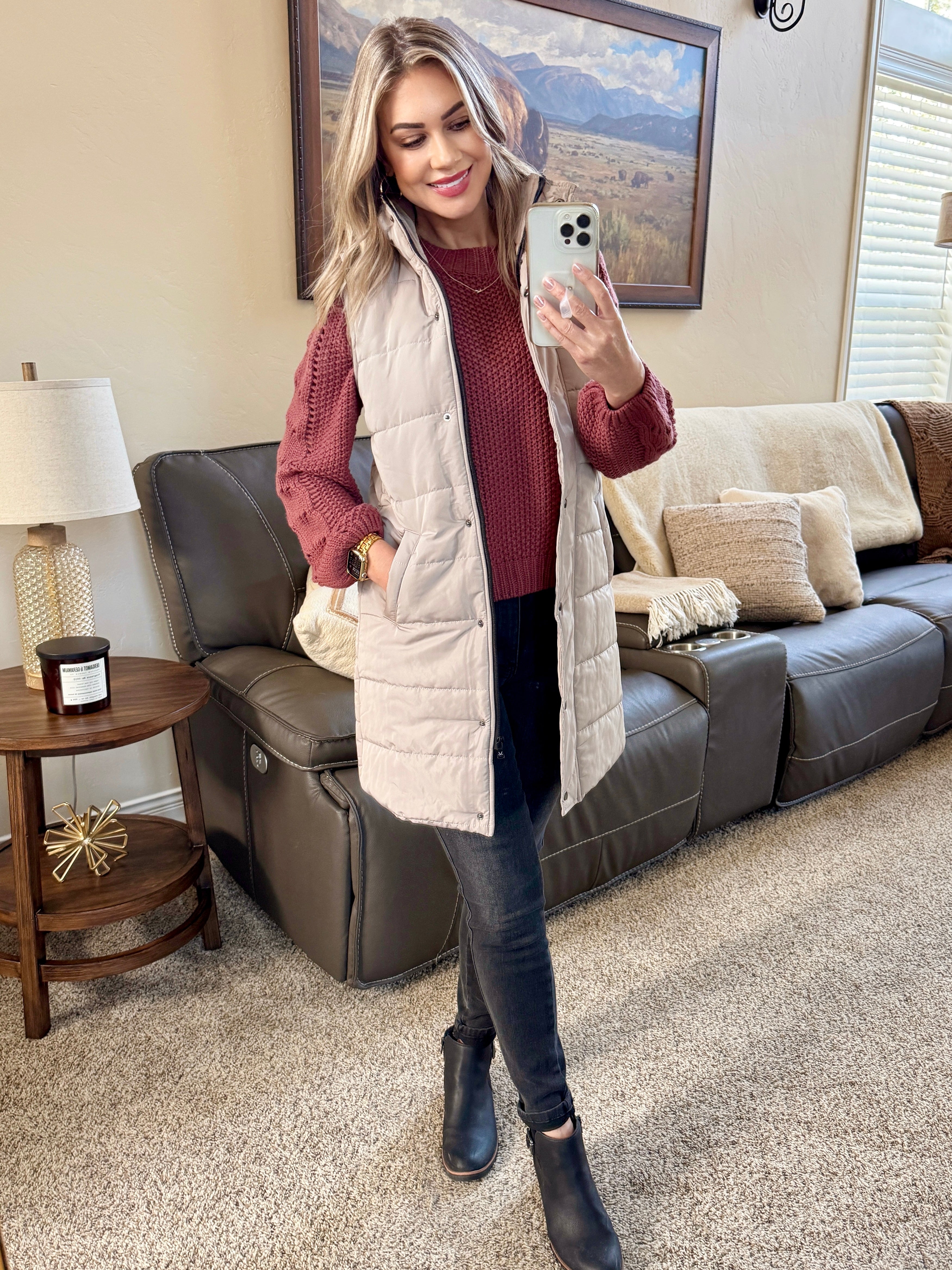 Introducing the Harlow Long Vest in latte! With its convenient pockets, zipper and button closure and versatile pairing options with our Leah or Larissa tops, this vest is a must-have for any wardrobe. Get ready to fall in love and complete your fall and winter looks!