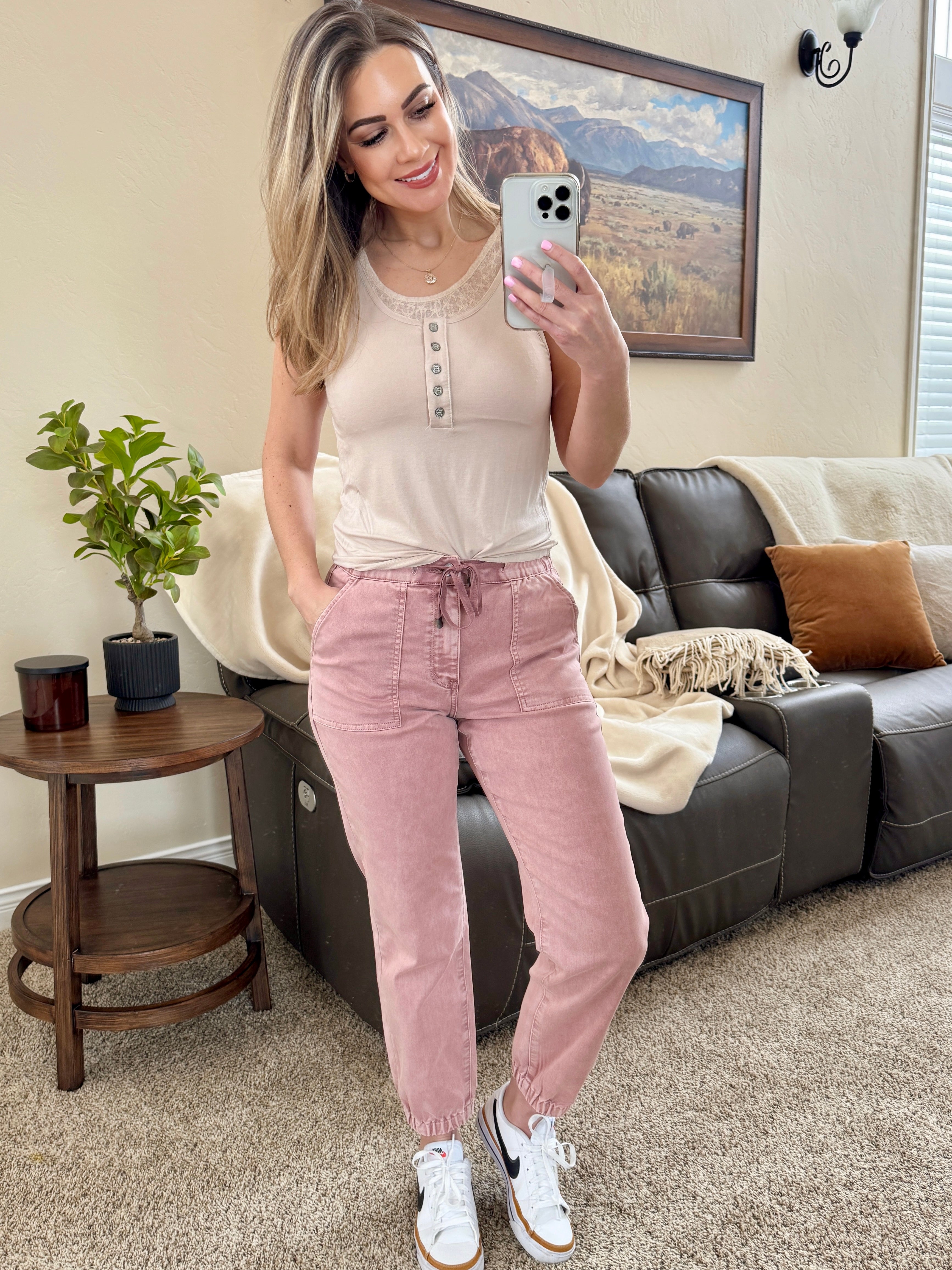 Mica Denim High Rise Crop Jogger in Deep Pink