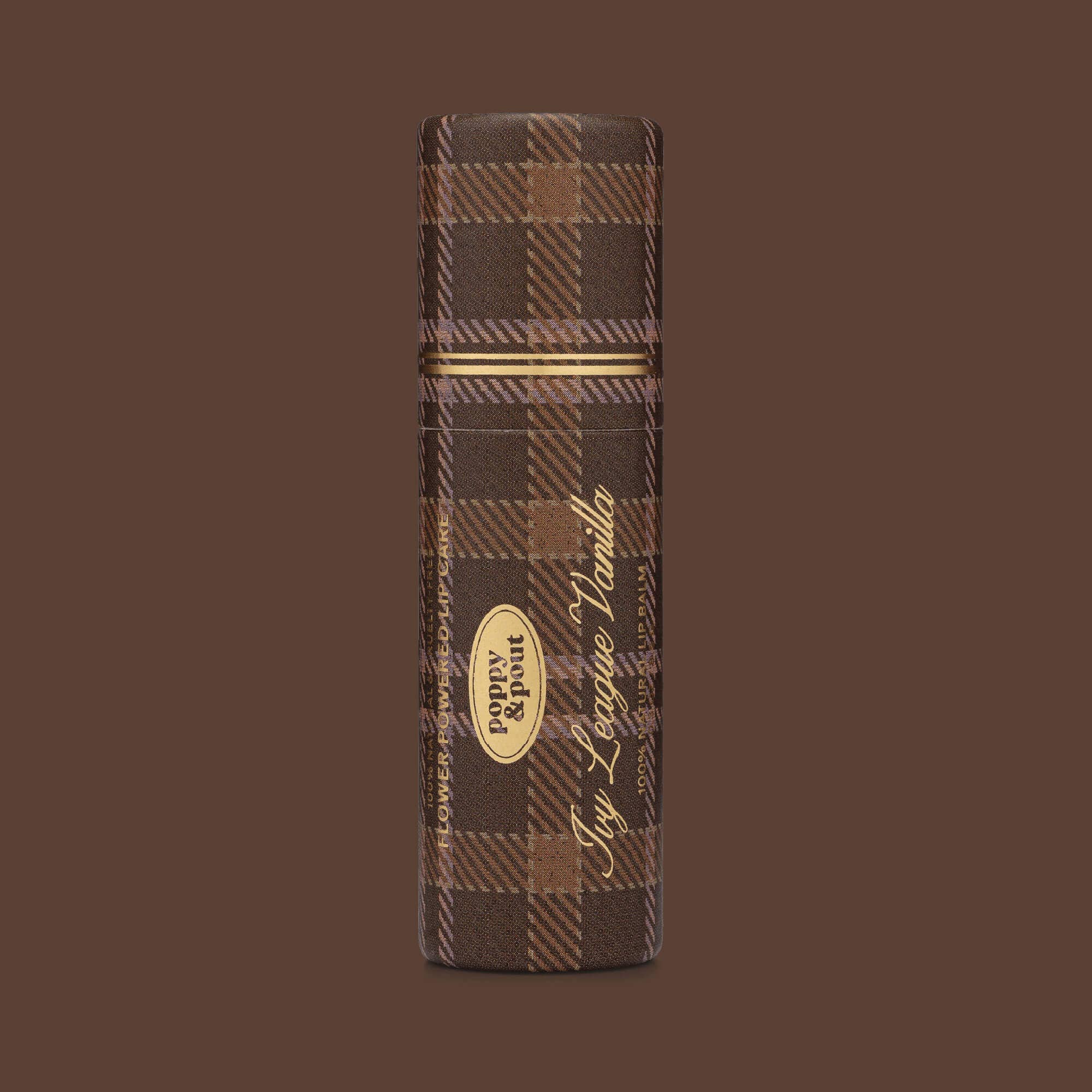Meet the Ivy League Vanilla Lip Balm from Poppy & Pout's Uptown Autumn collection. This fall lip balm blends warm, french vanilla, maple, and praline and is inspired by a walk through ivy-covered campuses with leaves crunching underfoot.