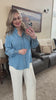 Smocked Sleeve Denim Button Down Top