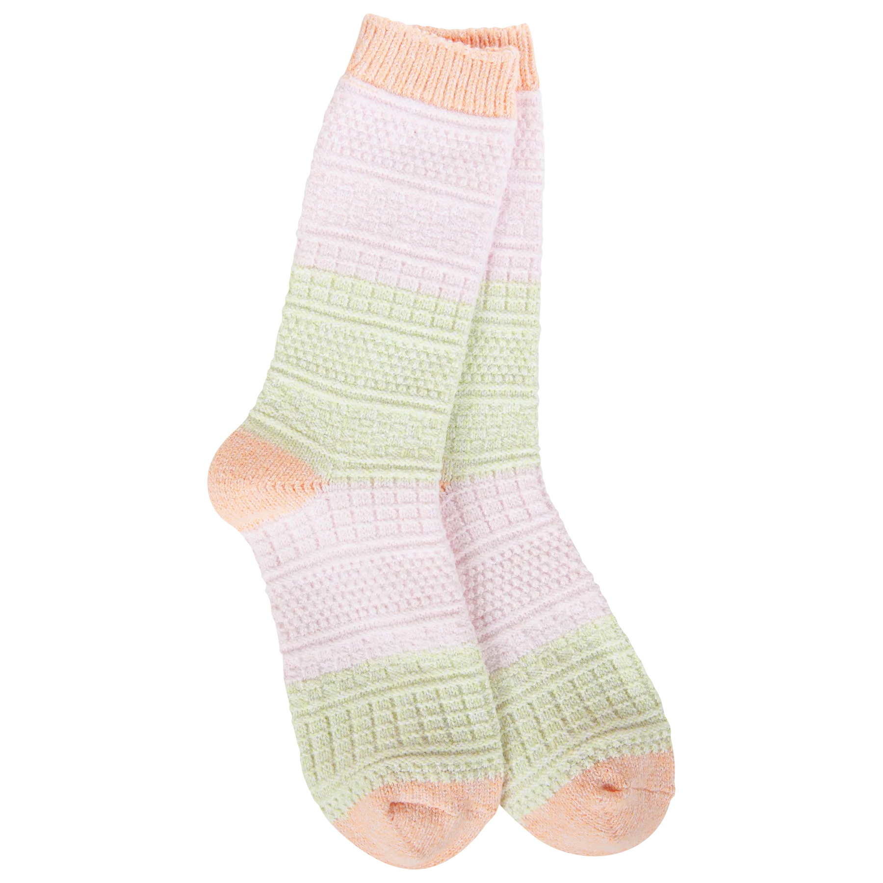 World's Softest Socks - Basket Crew in Yellow/Peach/Pink